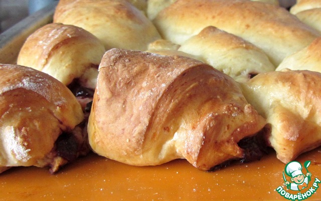 Это при том, что замесила вчера вечером, раскатывала кое-как одной рукой (на второй спала малышка), верх ничем не смазывала. Не ожидала, что довольно плотное на ощупь тесто после ночи в холодильнике вот так вот поднимется и станет таким нежным.