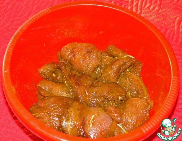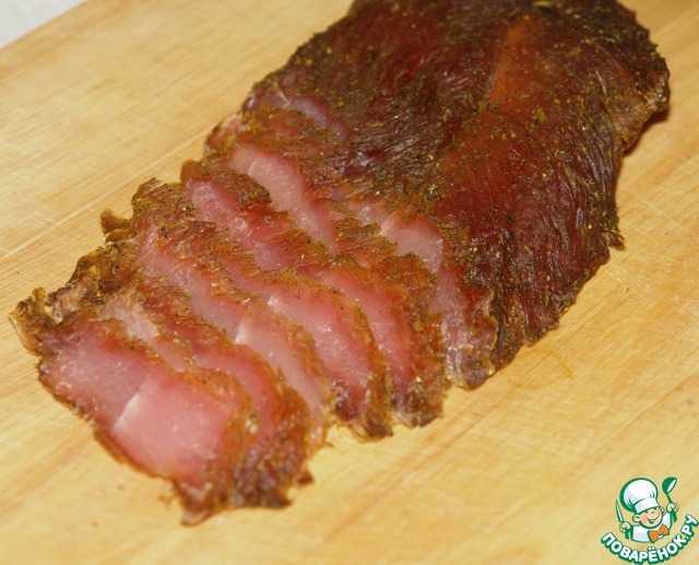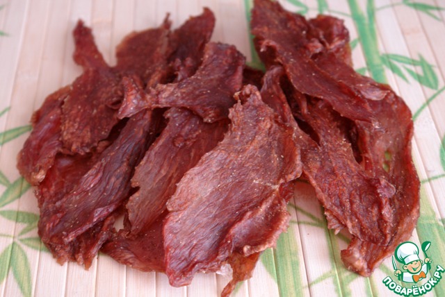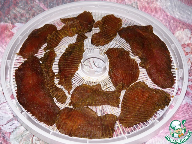 Далее, эксперименты с мясом. Сначала делала вяленое филе индейки, замариновала филе в специях и соевом соусе, стояло в маринаде два дня в холодильнике