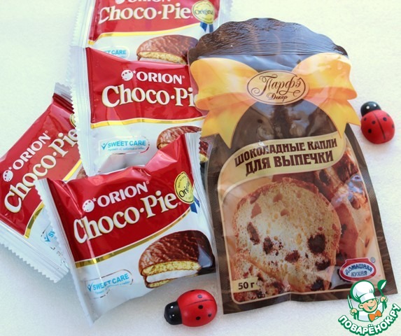 И это ещё не все. Ну какого кулинара оставят равнодушным шоколадные капли для выпечки, такой заветный пакетик держу в руках впервые. Не обошлось и без сладенького, мммм....., хотела к чаю подать, да какой там... на лету съели.