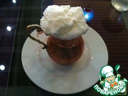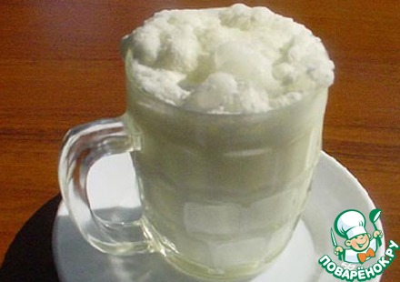 Разлить по стеклянным стаканам и немедленно подавать. Образовавшиеся в стакане сверху пузырьки при подаче на стол должны сохраниться – они являются обязательным составляющим этого напитка.