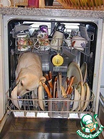 Если бы мой пес залез в посудомойку, я бы его .....!!!!! Да нет, он в нее бы не поместился!!!! ))))