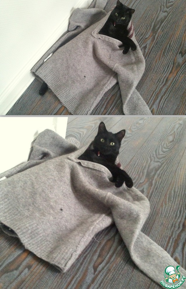 А вот мелкая украла свитер и умудрилась его надеть! По-моему ей нравиться!