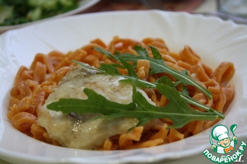 Томатные феттучине с куриными грудками в креме из молока и лимона: