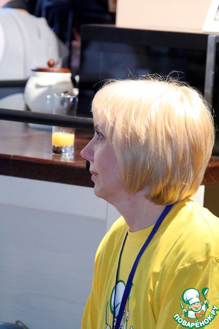 Лариса (Ларек) готовится - она будет выступать первой из поварят, сразу за шеф - поваром...