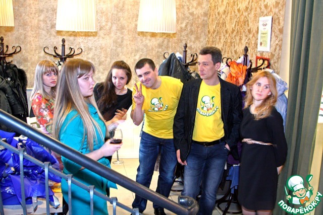 Супер фотографии!!! Как интересно... Сколько мужчин там у вас было... Это все наши поварята?! Как же мне хотелось попасть к вам... Как жаль, что я так далеко живу... Вот у вас теперь есть такие приятные воспоминания, приятные знакомства вживую и такие замечательные футболки.... Как жаль, что у меня никогда не будет такой памятной футболочки....