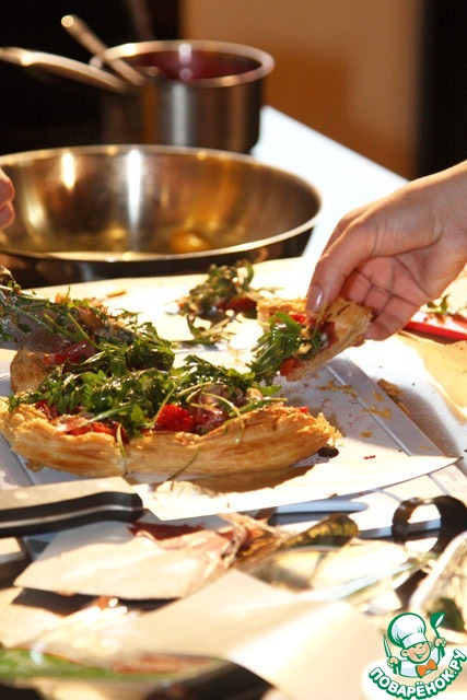 Она готовила ВОСХИТИТЕЛЬНЫЙ "Гато из инжира с пармской ветчиной, рукколой и пармезаном" (в роли инжира - свежая клубника, что ничуть не испортило впечатления!)