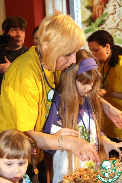 Лариса (Ларек) готовится - она будет выступать первой из поварят, сразу за шеф - поваром...