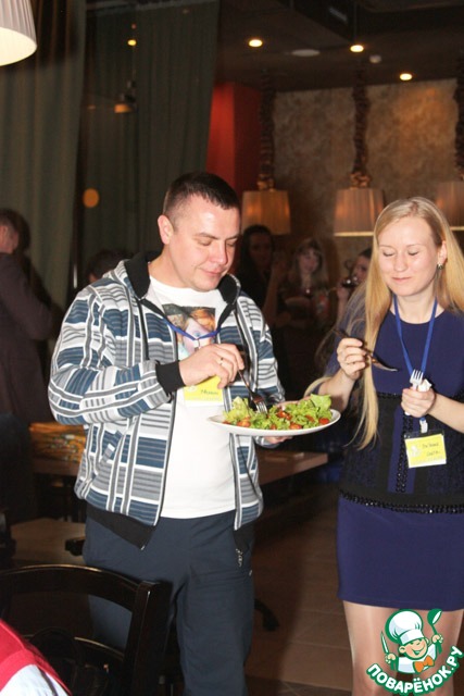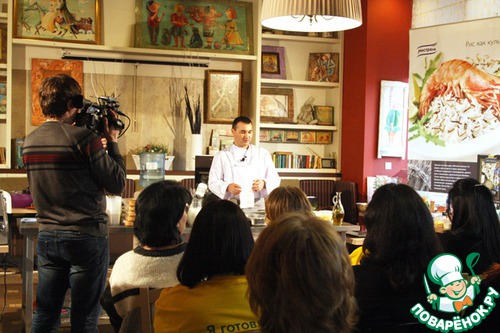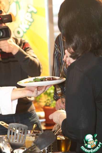 Официальная часть началась с выступления организаторов и мастер - класса от бренд-шефа сети "Кулинариум", который готовил телятину с соусом из тунца и утиную грудку с персиками и вишневым соусом