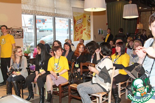 Супер фотографии!!! Как интересно... Сколько мужчин там у вас было... Это все наши поварята?! Как же мне хотелось попасть к вам... Как жаль, что я так далеко живу... Вот у вас теперь есть такие приятные воспоминания, приятные знакомства вживую и такие замечательные футболки.... Как жаль, что у меня никогда не будет такой памятной футболочки....