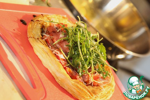 Она готовила ВОСХИТИТЕЛЬНЫЙ "Гато из инжира с пармской ветчиной, рукколой и пармезаном" (в роли инжира - свежая клубника, что ничуть не испортило впечатления!)