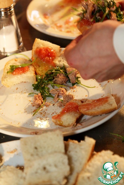 И завершал мастер-класс Салат тосканский "Панцанелла", поданные на тостах и чиабатте