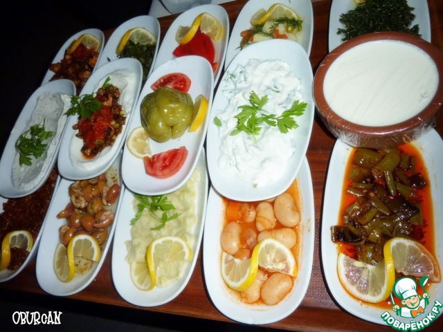 Когда заходит речь о турецких закусках и салатах, наступает спорная пауза, ибо что же такое закуска, а что салат невсегда можно дать равнозначный ответ. Однако, существует единственное, не вызывающее сомнений мнение; ракы без салата и закусок (meze) не пьют.