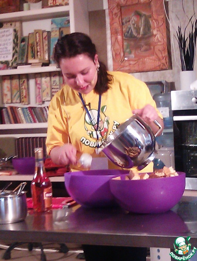 (ой, я поваренок)) так и сказал - клуб анонимных поварят - в общем то в отношении меня он прав - для меня кулинария - это жизнь, даже не болезнь))))Мастер класс от Марии тоже очень порадовал - но к сожалению десерт от нее я попробовать не смогла - опять же понимаете - положение обязывает воздерживаться от алкоголя - а в десерте был коньяк))) - хотя это было очень красиво и я уверена - вкусно, салат из салата - был очень похож на те, что мы дома делаем - очень вкусно)))))