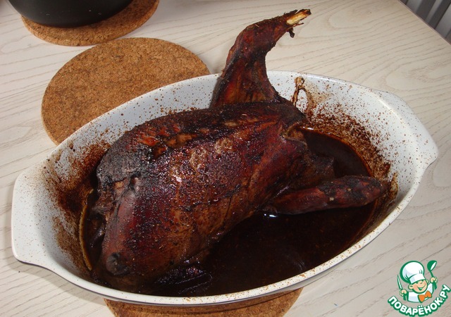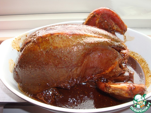 Поливали соком два раза. Жалко, что без фольги, по краям очень сухо получилось.