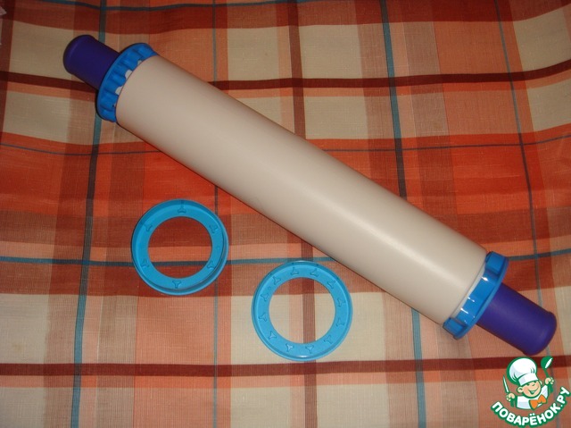 Кольца,устанавливающиеся по бокам скалки,позволяют раскатывать тесто фиксированной толщины 3 или 6 см.
