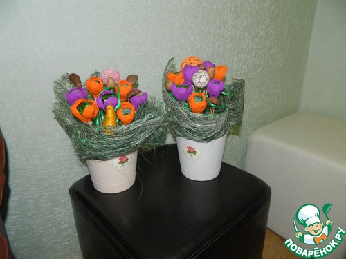Букет из конфет. Мой первый опыт. Мои весенние крокусы