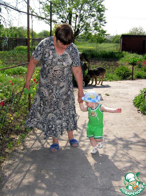 А когда проснулась то долго топала за ручки со своей бабулей и моей племяшей))А я тихо мирно попивала сочек и кушала куличики)