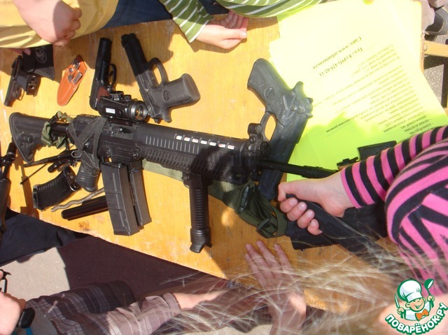 Была организована "Полевая кухня".Угощали гречневой кашей и чаем!