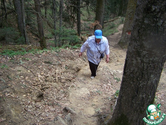 А мы цепляясь за ветки и корни деревьев пробираемся к тропе. Маршрут предстоит преодолеть не простой идём на подъём .