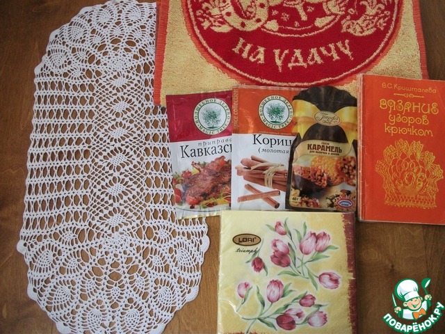 . За книгу по вязанию и за чудеснейшую салфетку , связанную Женечкой специально для меня !!!
