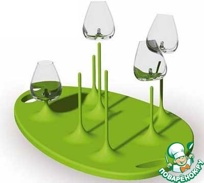 Бокалы на подставке очень похожи на тюльпаны, а наливая в них разные напитки, вы сделаете их разноцветными. Такие бокалы удобно лежат в руке, а в случае необходимости их можно просто поставить на стол. Благодаря такой подставке, напитки будет удобно подавать, а после окончания банкета можно перевернуть бокалы и использовать подставку в качестве сушки.
