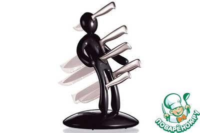 Подставка для ножей сделана в виде вращающегося деревянного колеса с прикованной к нему человеческой фигуркой. Всё как в самом настоящем цирке! [cut]