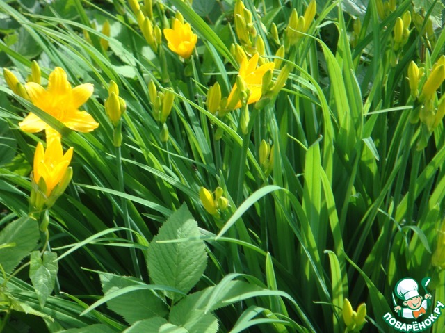 А на этой фотографии за лилейником видно завязавшуюся красную смородину