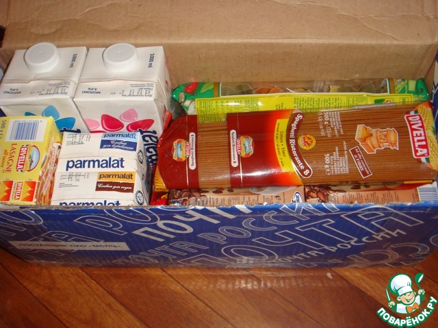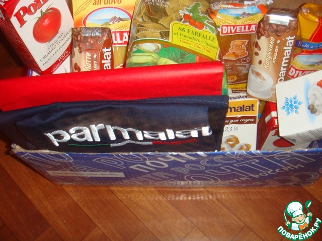 Было так радостно,тем более,что это мой первый приз.Доставили посылочку прямо домой,очень оперативно.Приятной неожиданностью было то,что ,помимо продуктов,я обнаружила симпатичный такой фартук из плотной ткани,с пряжечками и логотипом PARMALAT.