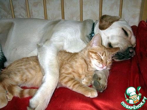 Вот уж так дружба! И к тому же в детской кроватке дрыхнут!