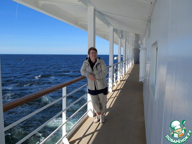4 июня - снова весь день в море, но идем вдоль берега. Погода великолепная, несмотря на свежий ветерок, на палубе с подветренной стороны можно загорать