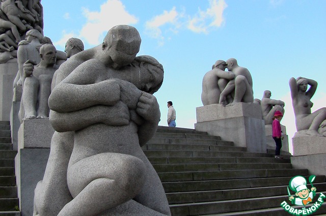 Следующая остановка - парк скульптур Вигеланд, который содержит 227 скульптурных групп, созданных национальным скульптором Норвегии Густавом Вигеландом в 1907—1942 гг. Скульптор не дожил лишь год до его завершения. Главным условием, которое скульптор поставил перед городскими властями - вход в парк должен быть бесплатным.