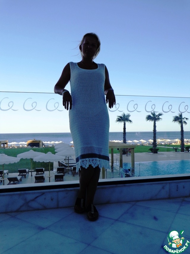 Отель был шикарнецкий: новенький (месяц как открылся), 8 ресторанов кухни разных стран, где можно и обедать, и ужинать (по меню, с бутылочным вином, которое при тебе откроют и дадут попробовать, а если не понравится - предложат другое вино), своя кондитерская, пиццерия, винный бар, бар шампанского, водные горки. Не понравилась только галька на пляже, т.к. тяжело в море заходить. И спортзал был платный и дорого стоил. Поэтому результат отдыха + 2 кг.Вот, собственно, я на балконе нашего номера.