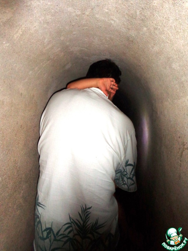 Это муж с дочкой впереди. Вообще там очень темно и страшно, просто мы в мобильном включили фонарик, чтобы дети не испугались. А так даже мужчинам страшновато в нём, т.к. туннель очень узкий и низкий.