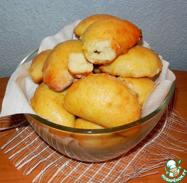 Пирожки из творожного теста https://www.povarenok.ru/recipes/show/75800/ Делала с мясом, количество сахара уменьшила в 2 раза. Вкусное, нежное тесто