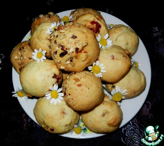 Печенье с вишней и изюмом https://www.povarenok.ru/recipes/show/74366/ Мягенькое, нежное, вместо изюма добавляла орешки