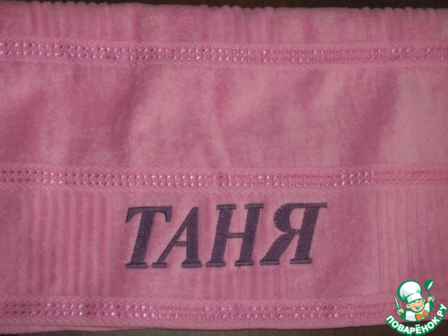 [cut] Ну а теперь поподробнее!Когда я открыла коробочку,то в глаза мне бросилось что-то яркое и розовое.Когда я достала ,оказалось замечательное полотенечко,такое мягусенькое на ощупь.Старшая Настёна сразу притулила его к лицу и громко произнесла:"Это теперь моё!"Но когда мы его развернули оно оказалось именным.Да-да,с моим именем Таня!Оно моё,ИМЕННОЕ!!!