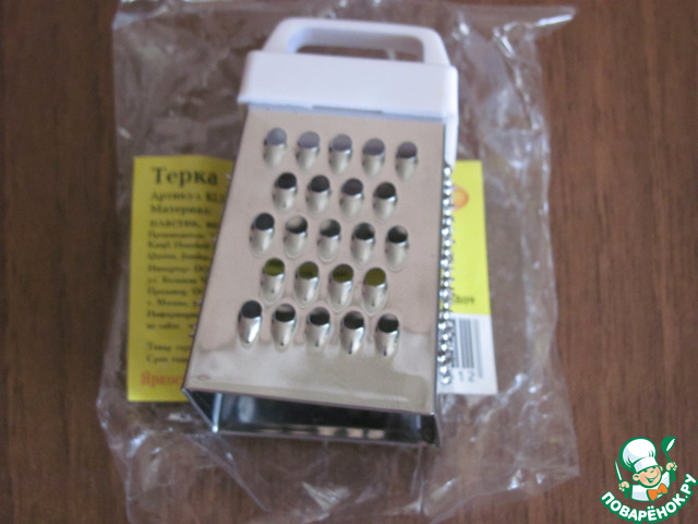 Ой,а ещё в коробочке я нашла маленькую тёрочку!Она такая крошечная!Я думала,это сувенир(у нас я таких и не видела,даже в "METRO Cash&Carry.")Хотя мне казалось,что там всегда и всё есть!Оказалось,что не всё!Теперь я буду тереть чеснок,имбирь или лук и всегда вспоминать Женечку!