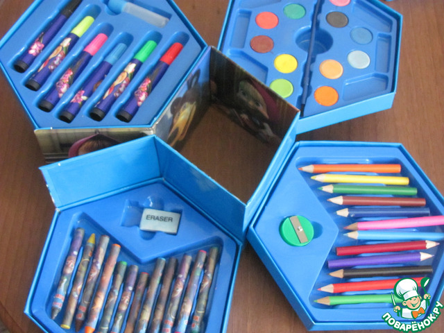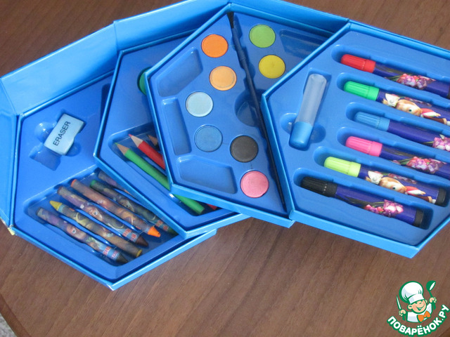 P.S. Сидит моя Катюшка сейчас на горшочке с коробкой в руках,на полу альбом и рисует!Женёк,уже проверены фломастеры-пишут все очень ярко и мягко;карандаши уже порисовали пол альбома!Я так чувствую,что сейчас мы пойдём рисовать красками!