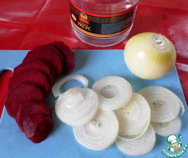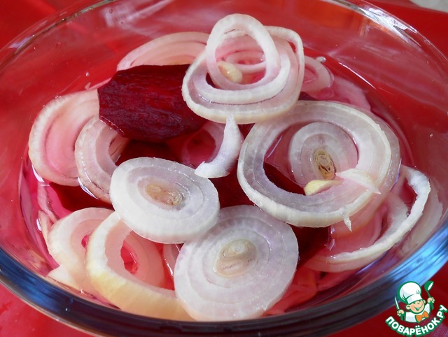 Ингредиенты: лук, свекла (малюсенькая), уксус, вода.