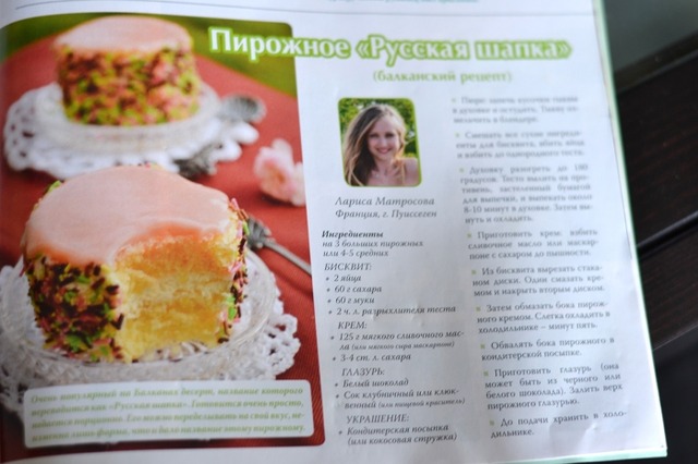 Мы работали над новогодним выпуском, в котором рассказывалось о различных новогодных традициях в разных странах. Я поделилась вкусным рецептом десерт - пирожным "Русская шапка".