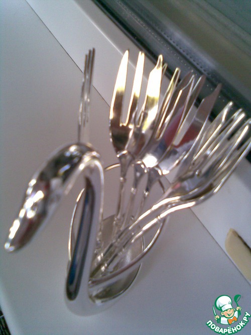 Это неимоверного изящества лебедь, который держит десертные вилочки... Завтра же они отведают бананово-творожное наслаждение...