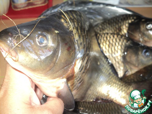 На этот раз на ужин у нас "подавали" карпа под сметаной.