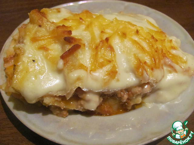 А это лазанья с мясом!Моя первая в жизни лазанья!!!Тесто делала сама,чем она мне и приглянулась!В магазинах листы лазаньи очень дорогие,а так вышло очень вкусно и сытно,спасибо
