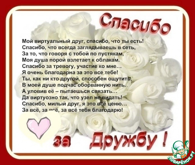 Дорогие мои поварята, милые мои подружки, хочу поблагодарить всех вас за поздравления, за множество положительных отзывов, за картинки на моей стене!!! Я все видела, все прочитала, я очень счастлива что вы у меня есть, спасибо вам за дружбу!!!