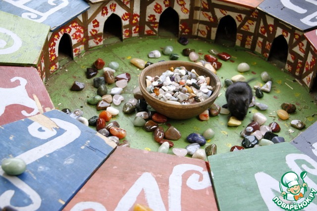 Нужно было выбрать полудрагоценный камушек и поставить на крышку одного из домиков. Настина ставка - оранжевый домик с буквой "R".