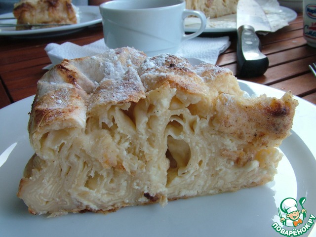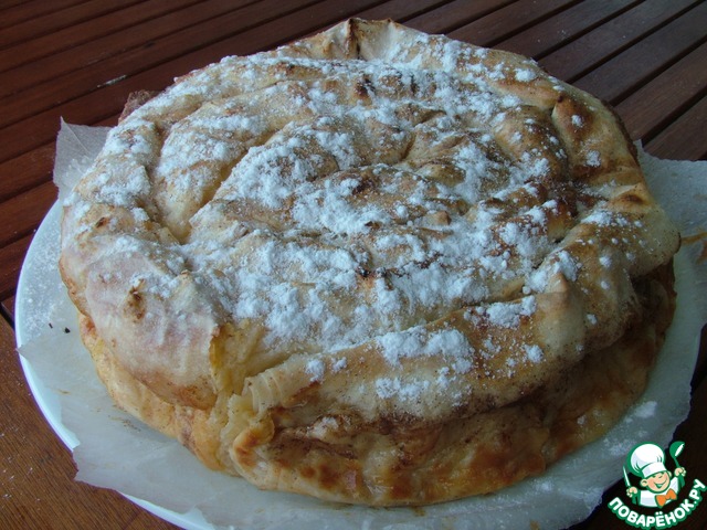 Плюнув на всё, купила в супермаркете фило, и приготовила сладкую баницу с творогом.