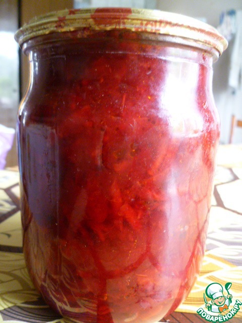 А еще я закрываю борщевую заправку.Уже второй заход. По своему рецепту: 3 кг свеклы, 2 кг моркови, 1 кг перца, 5-6 кг помидор( в зависимости от сочности), 1 л растительного масла, 1-1,5 столовые ложки соли, специи по вкусу.