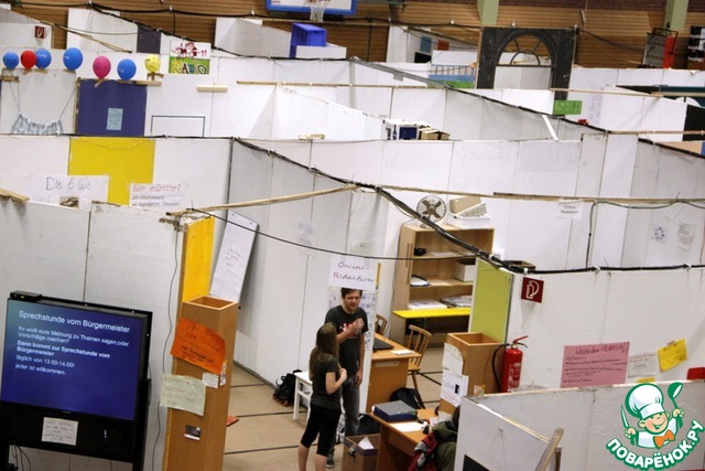 Это один из залов- бывших спортзалов одной из местных школ, разбитых на разные мини-бюро