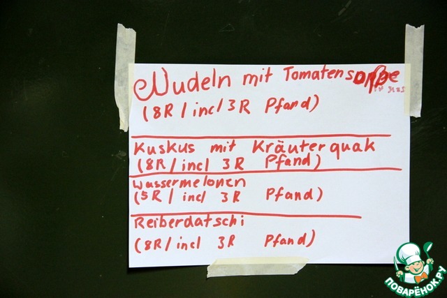 В меню, например, паста с томатным соусом или кускус с творогом и зеленью за 8 ратИсреля, арбуз - по 5 рат., напитки - по 3...