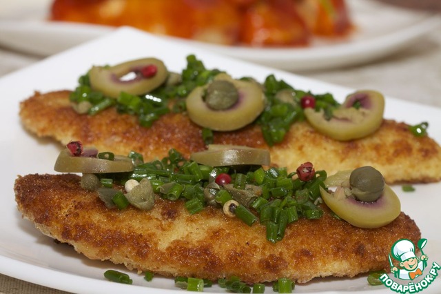 "Кусочки филе индейки, приготовленные по-итальянски" https://www.povarenok.ru/recipes/show/73937/